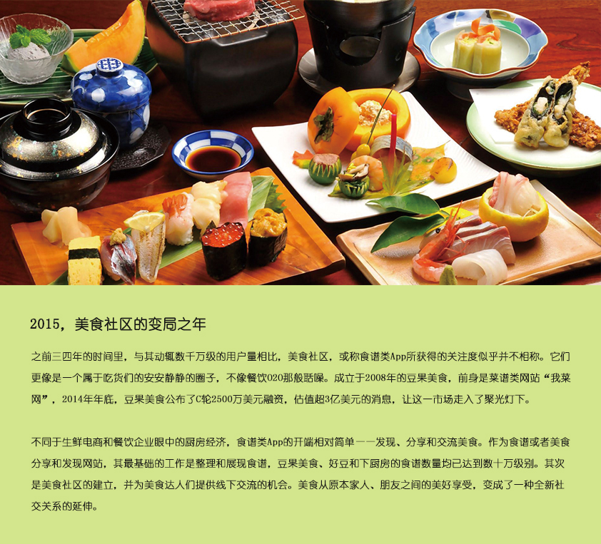 打造成熟的美食互動社區(qū),通過菜譜分享來連接并整合廚房空間內(nèi)包括廚電、家居產(chǎn)品、食材、調(diào)味品等在內(nèi)的多個傳統(tǒng)行業(yè),掀起廚房經(jīng)濟的革命。